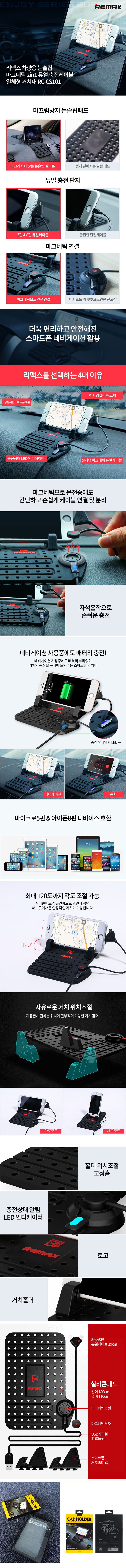 Remax 리맥스 마그네틱 2in1 케이블 일체형 차량용 논슬립 패드 카홀더
